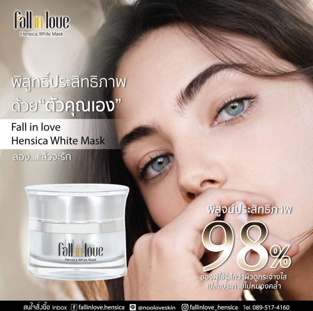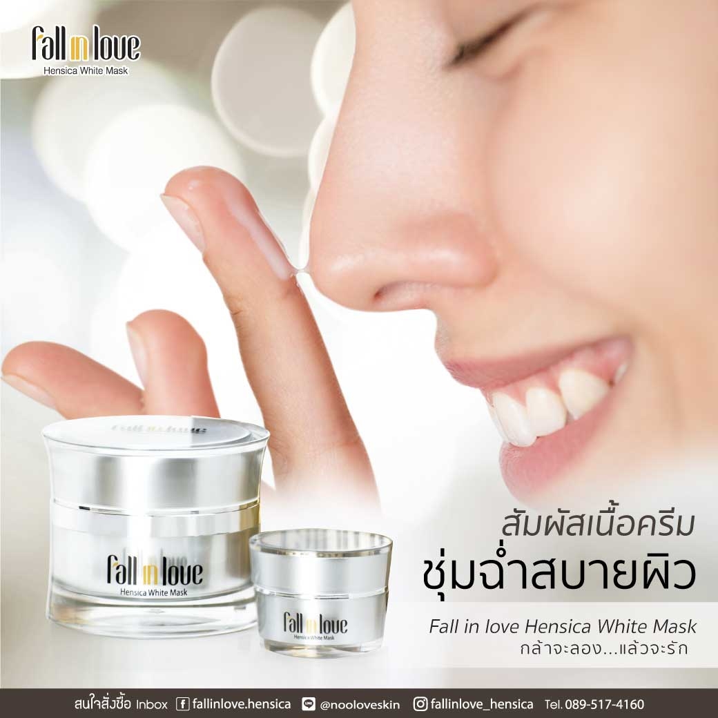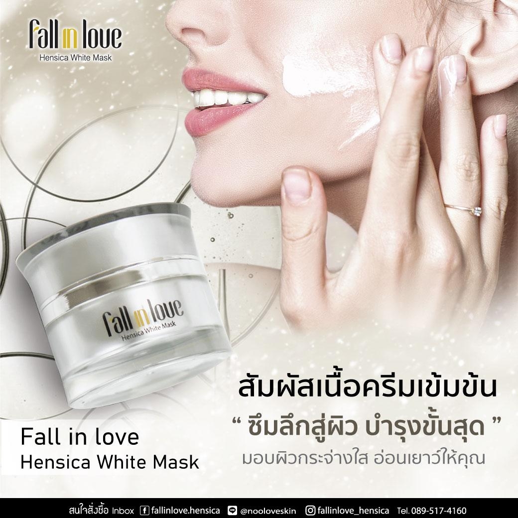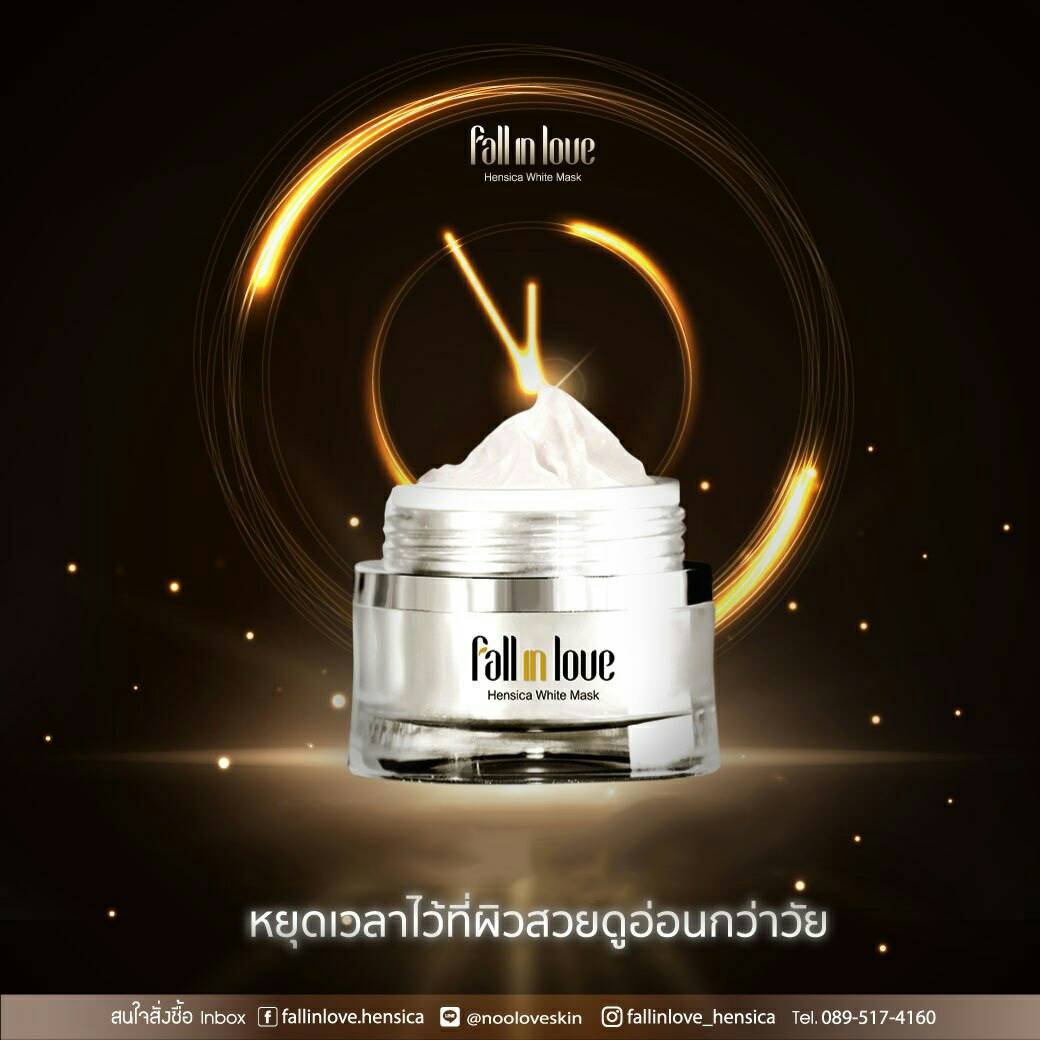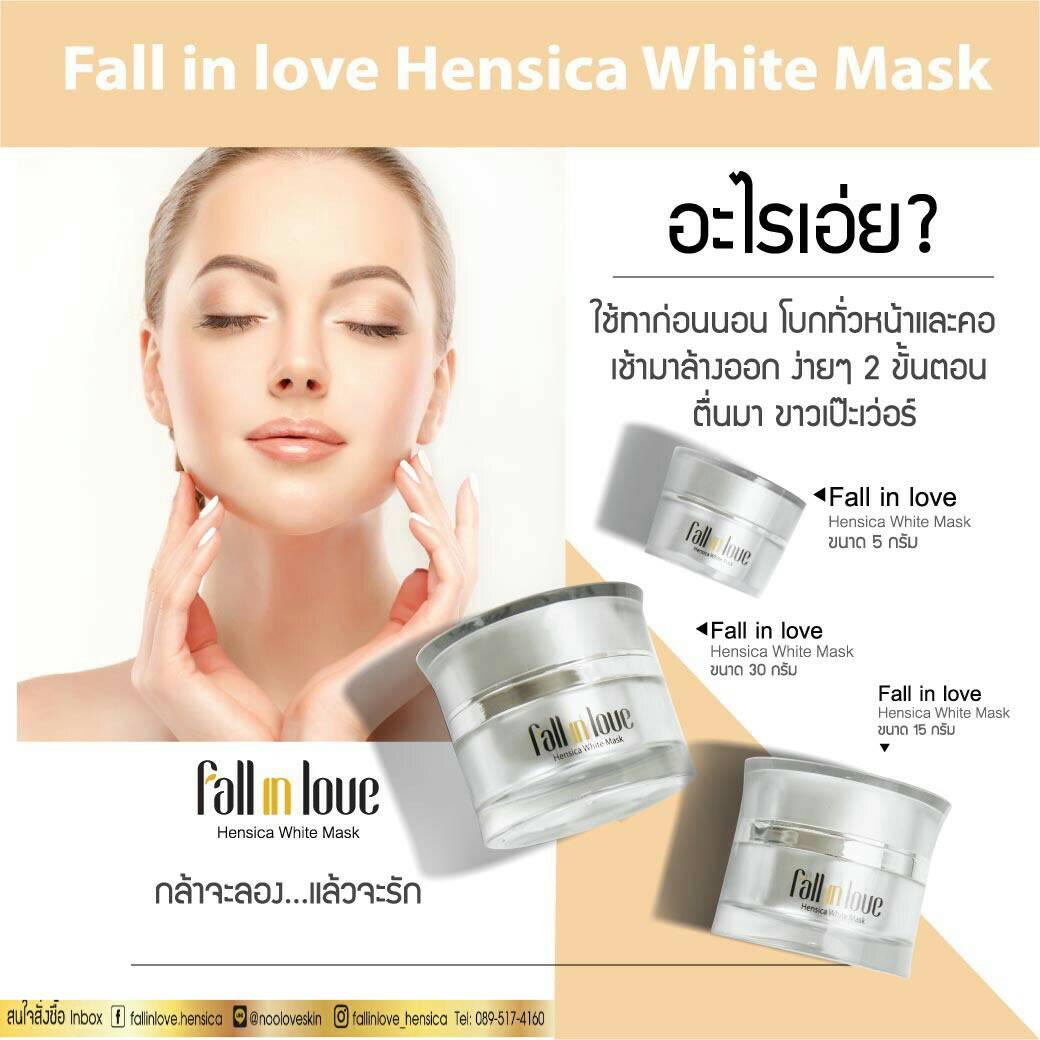 นวัตกรรมใหม่ Fall in Love Hensica White Mask ที่ขอท้าพิสูจน์ในเวลาเพียงค่ำคืนเดียวที่จะช่วยให้ใบหน้าของคุณเนียนนุ่ม สดใส น่าสัมผัส ซึ่งเป็นผลิตภัณฑ์มาส์กเข้มข้นบำรุงผิวหน้าขณะหลับ ที่จะช่วยให้คุณสาวๆที่มีใบหน้าหมองคล้ำ ฝ้า กระจุดด่างดำให้แลดูจางลง ขาวใสอย่างเป็นธรรมชาติ