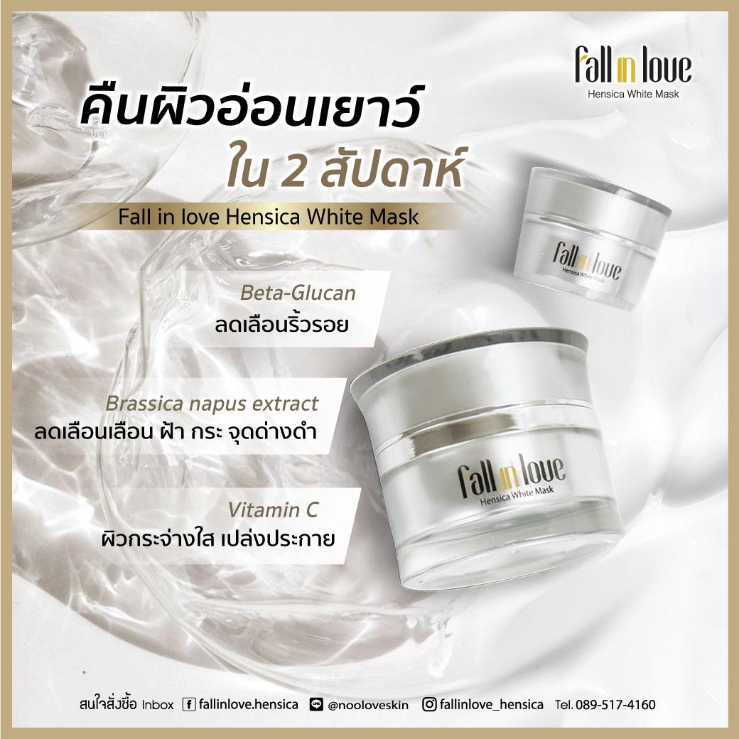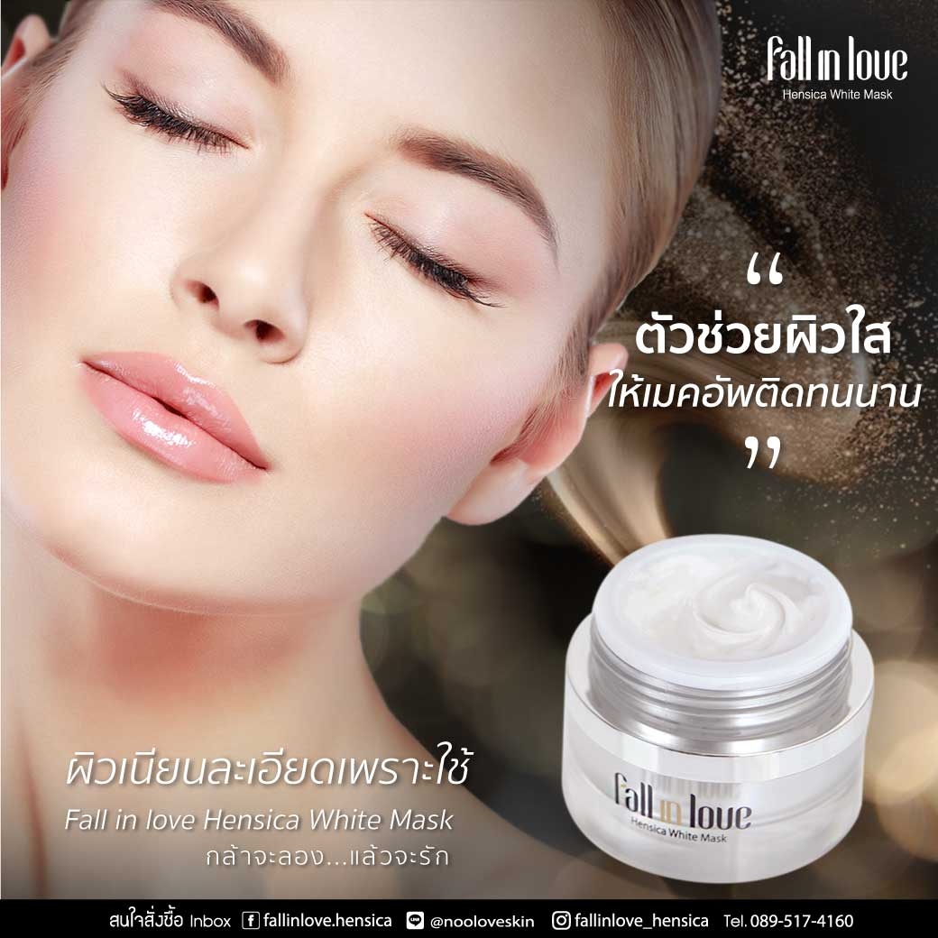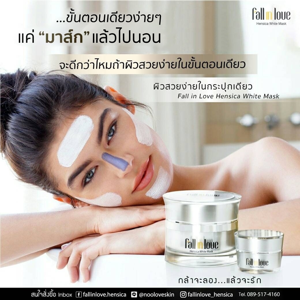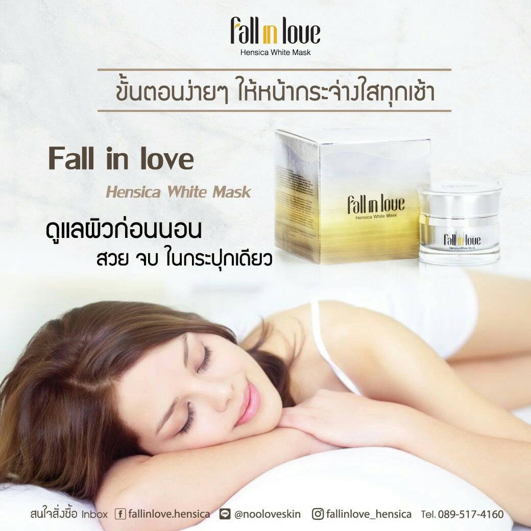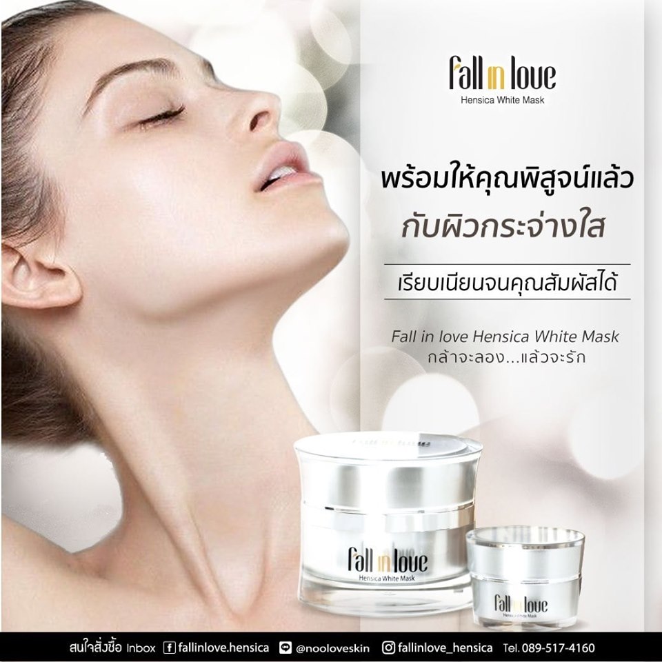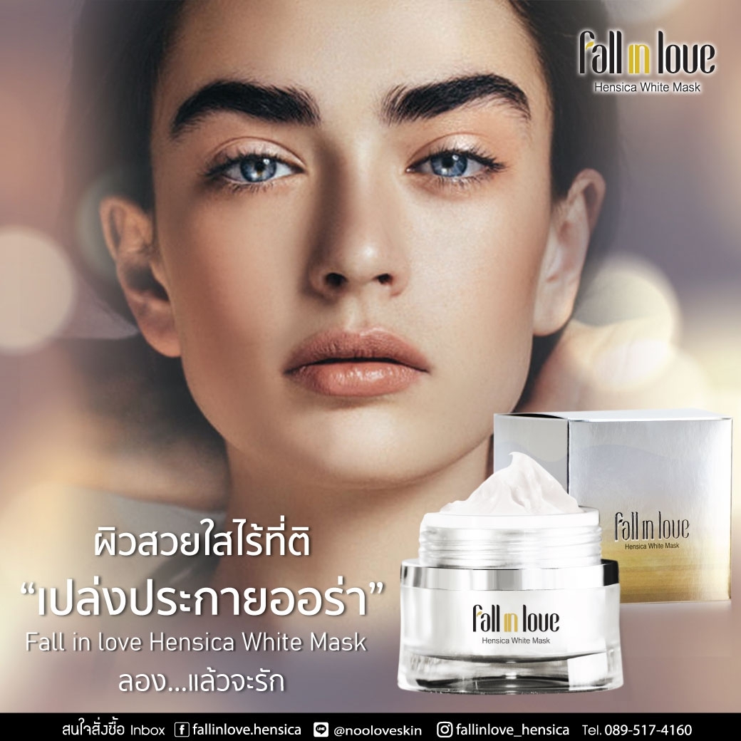 นวัตกรรมใหม่ Fall in Love Hensica White Mask ที่ขอท้าพิสูจน์ในเวลาเพียงค่ำคืนเดียวที่จะช่วยให้ใบหน้าของคุณเนียนนุ่ม สดใส น่าสัมผัส ซึ่งเป็นผลิตภัณฑ์มาส์กเข้มข้นบำรุงผิวหน้าขณะหลับ ที่จะช่วยให้คุณสาวๆที่มีใบหน้าหมองคล้ำ ฝ้า กระจุดด่างดำให้แลดูจางลง ขาวใสอย่างเป็นธรรมชาติ