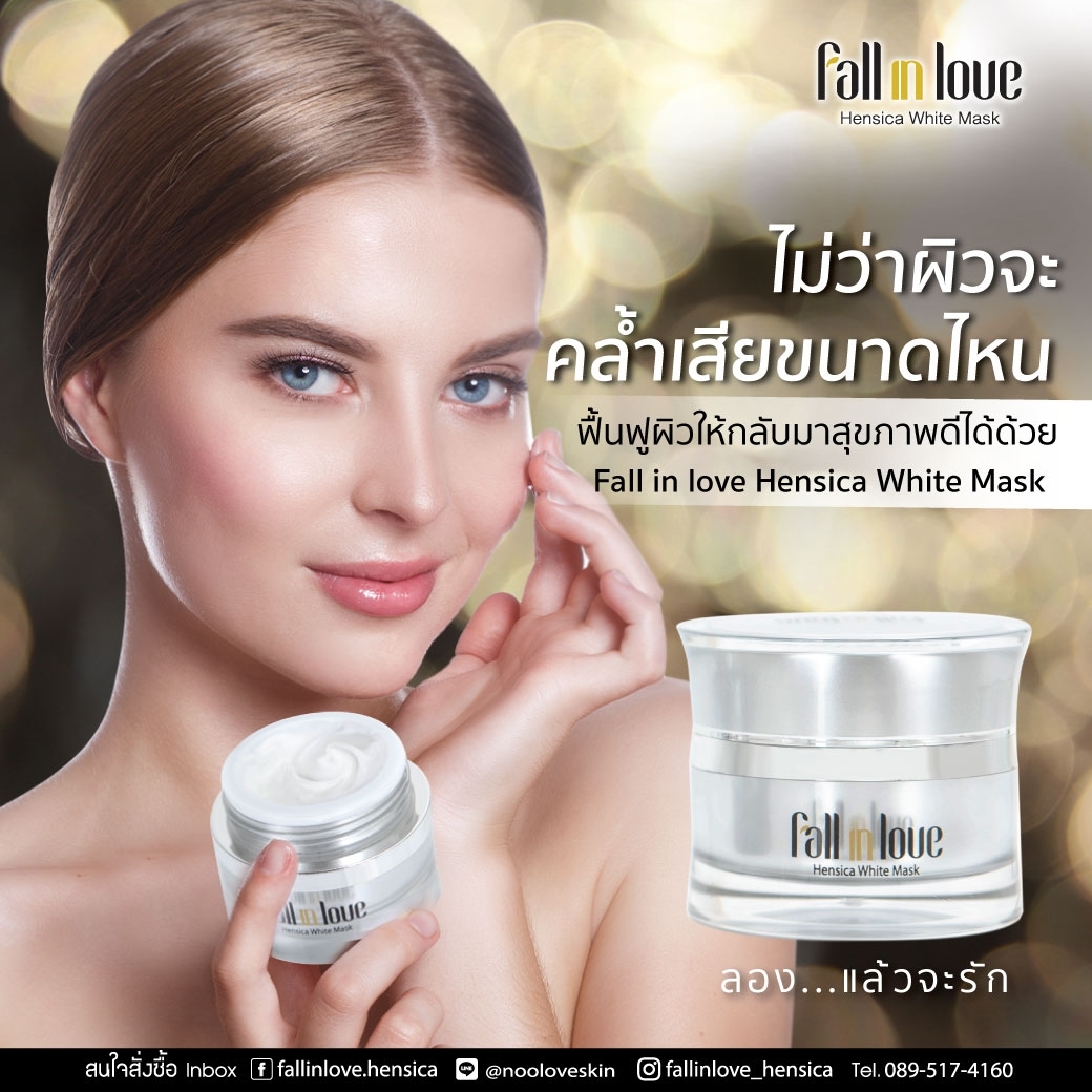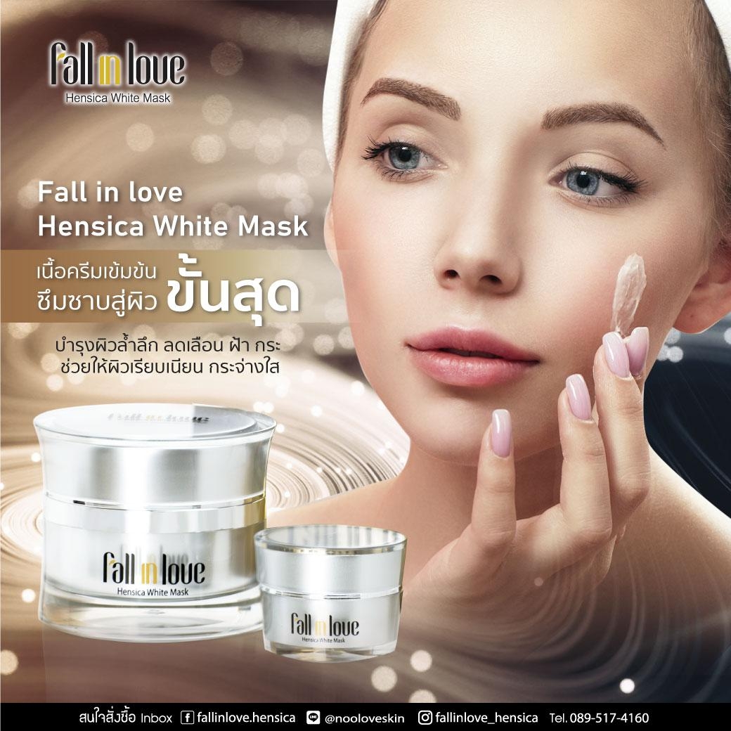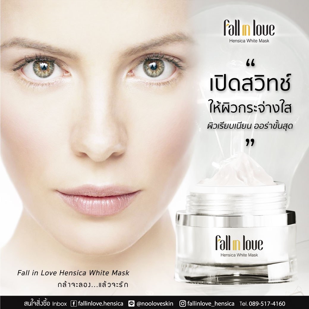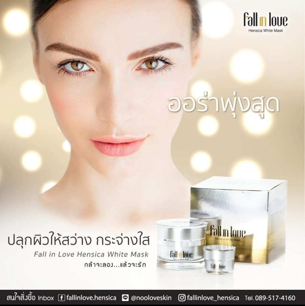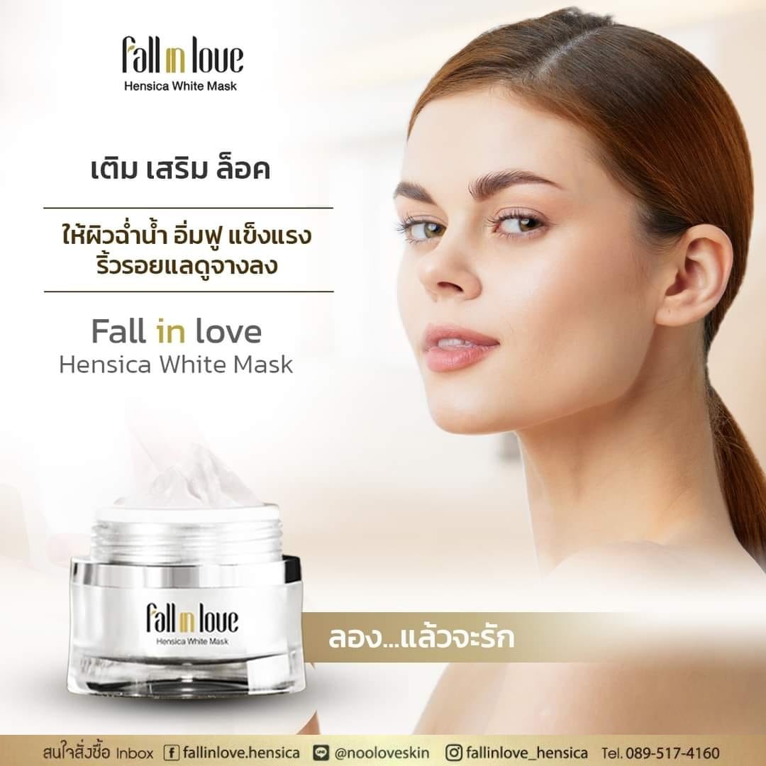 นวัตกรรมใหม่ Fall in Love Hensica White Mask ที่ขอท้าพิสูจน์ในเวลาเพียงค่ำคืนเดียวที่จะช่วยให้ใบหน้าของคุณเนียนนุ่ม สดใส น่าสัมผัส ซึ่งเป็นผลิตภัณฑ์มาส์กเข้มข้นบำรุงผิวหน้าขณะหลับ ที่จะช่วยให้คุณสาวๆที่มีใบหน้าหมองคล้ำ ฝ้า กระจุดด่างดำให้แลดูจางลง ขาวใสอย่างเป็นธรรมชาติ