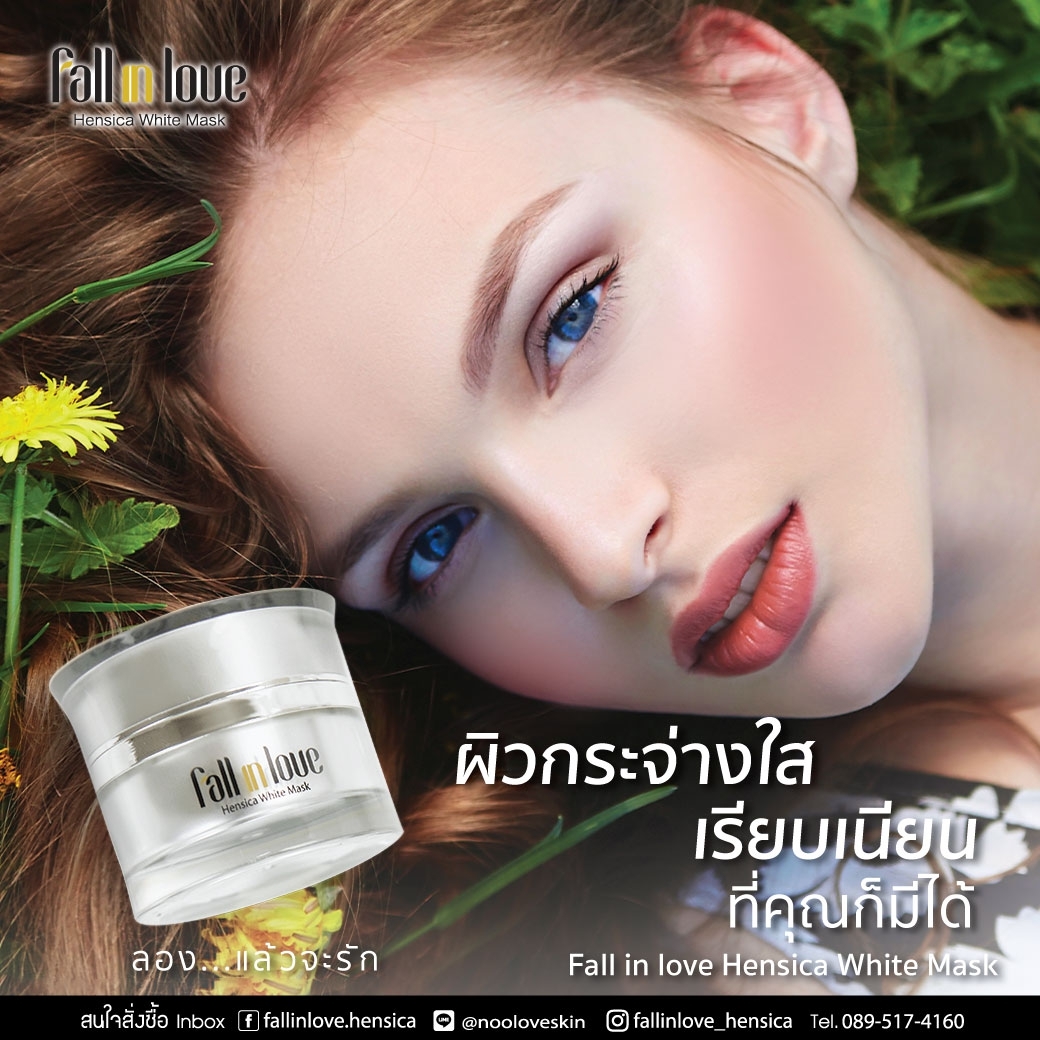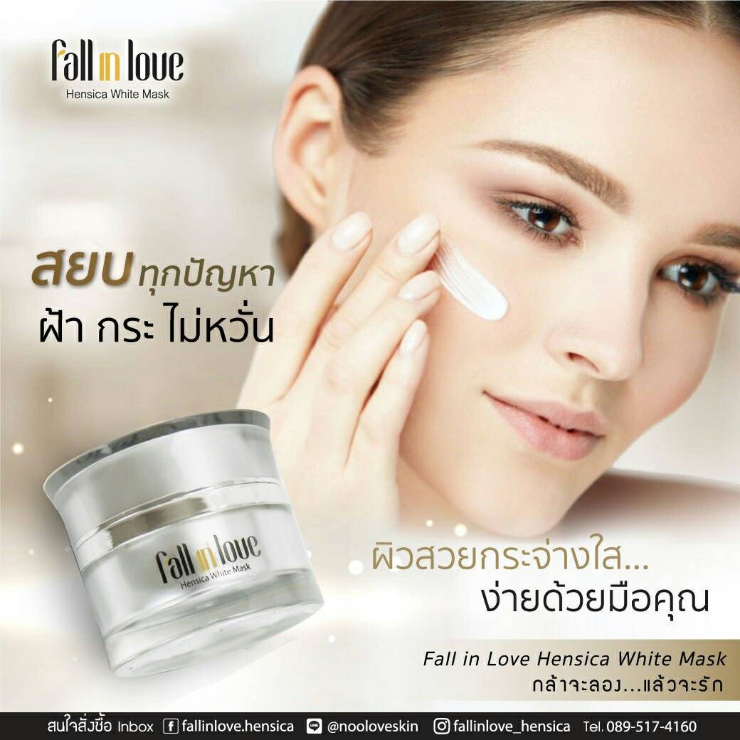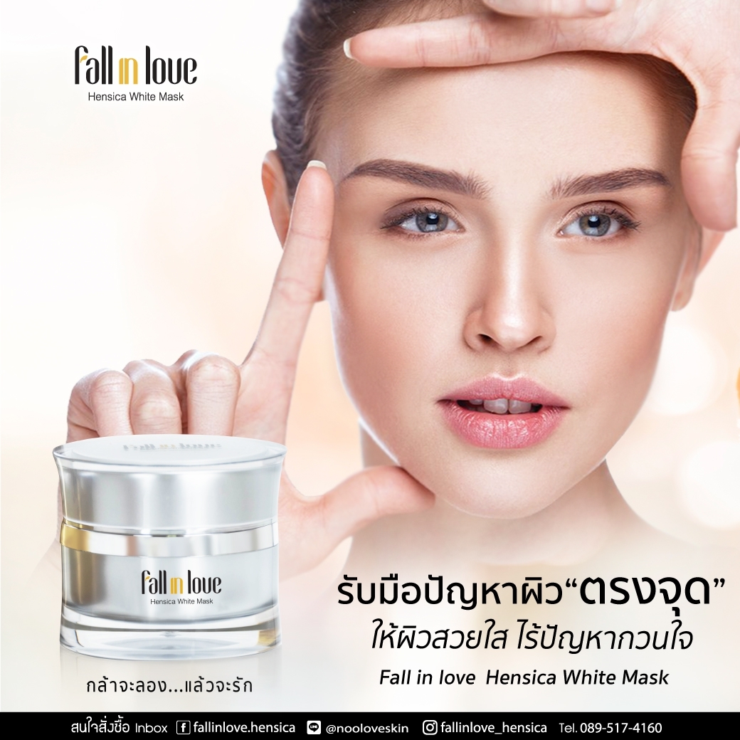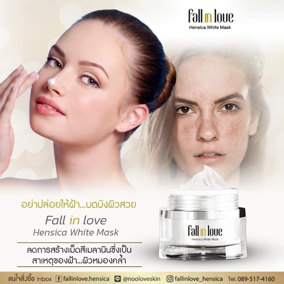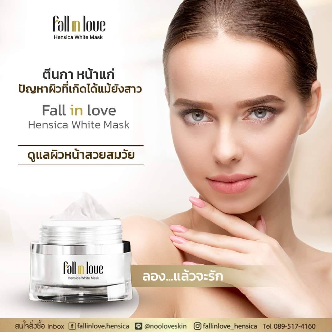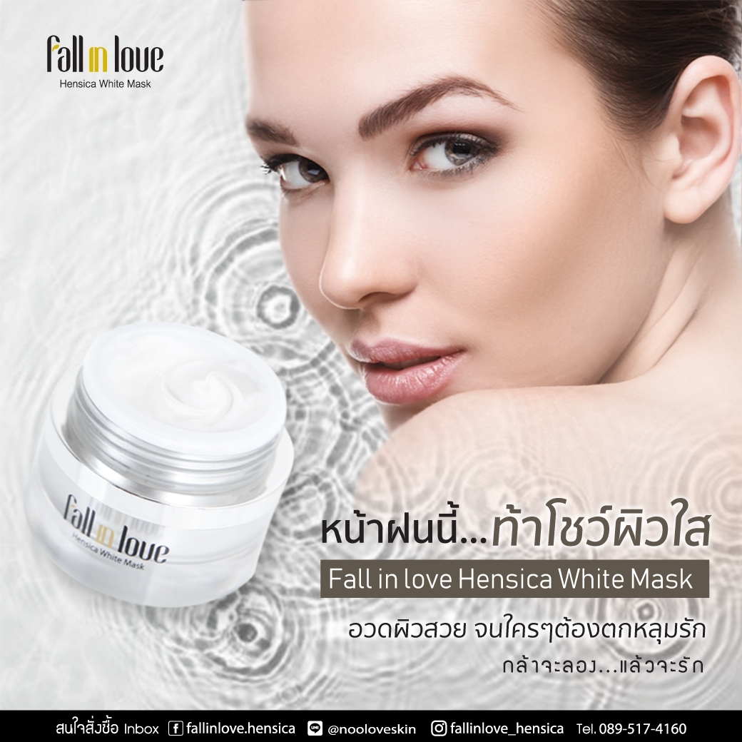 นวัตกรรมใหม่ Fall in Love Hensica White Mask ที่ขอท้าพิสูจน์ในเวลาเพียงค่ำคืนเดียวที่จะช่วยให้ใบหน้าของคุณเนียนนุ่ม สดใส น่าสัมผัส ซึ่งเป็นผลิตภัณฑ์มาส์กเข้มข้นบำรุงผิวหน้าขณะหลับ ที่จะช่วยให้คุณสาวๆที่มีใบหน้าหมองคล้ำ ฝ้า กระจุดด่างดำให้แลดูจางลง ขาวใสอย่างเป็นธรรมชาติ