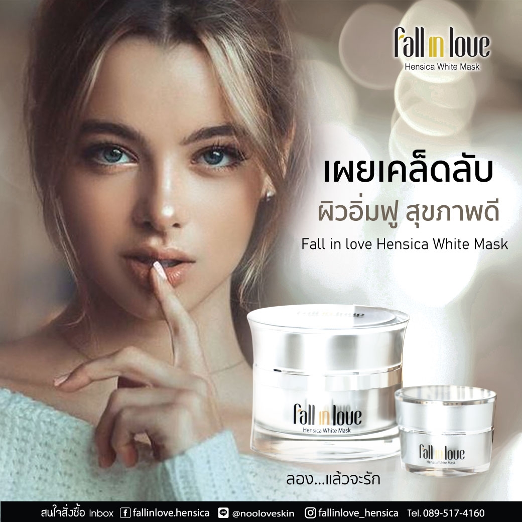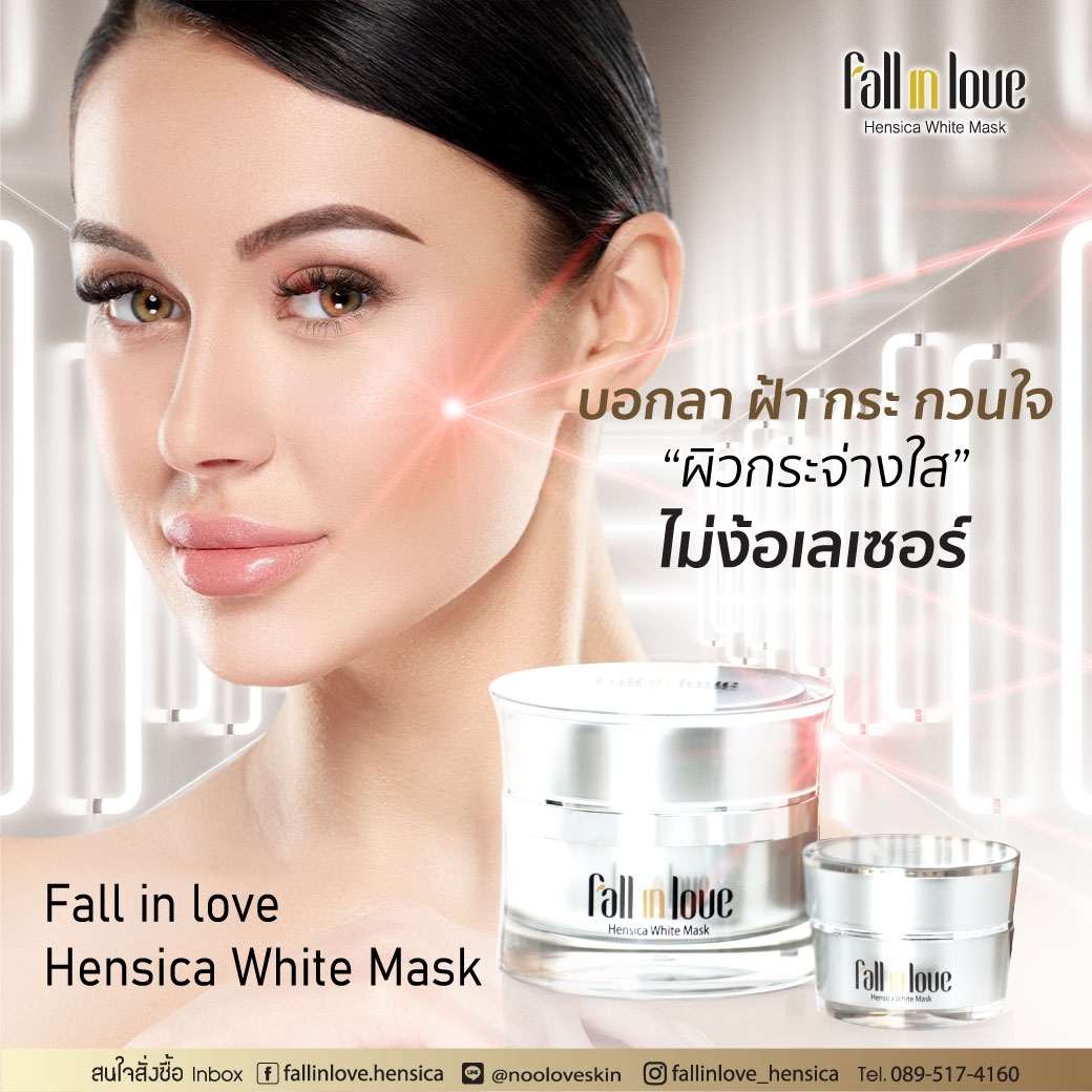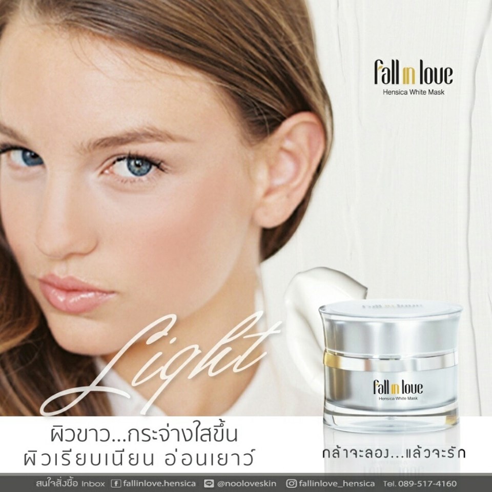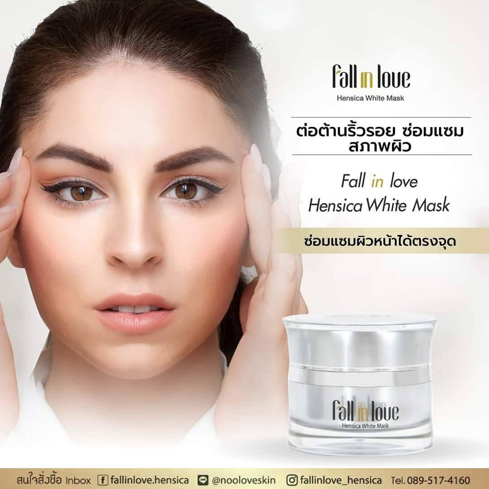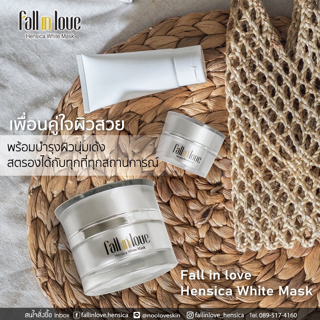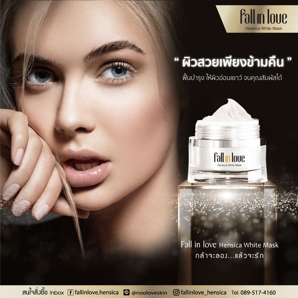 นวัตกรรมใหม่ Fall in Love Hensica White Mask ที่ขอท้าพิสูจน์ในเวลาเพียงค่ำคืนเดียวที่จะช่วยให้ใบหน้าของคุณเนียนนุ่ม สดใส น่าสัมผัส ซึ่งเป็นผลิตภัณฑ์มาส์กเข้มข้นบำรุงผิวหน้าขณะหลับ ที่จะช่วยให้คุณสาวๆที่มีใบหน้าหมองคล้ำ ฝ้า กระจุดด่างดำให้แลดูจางลง ขาวใสอย่างเป็นธรรมชาติ