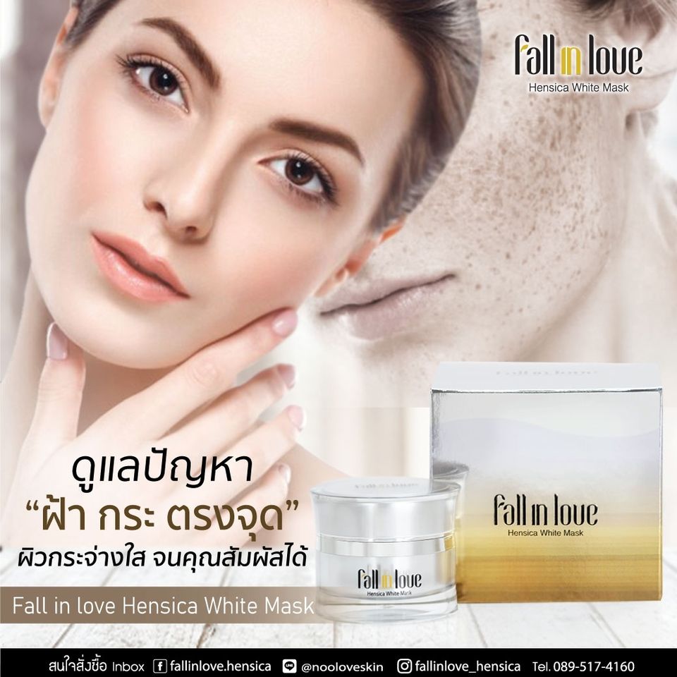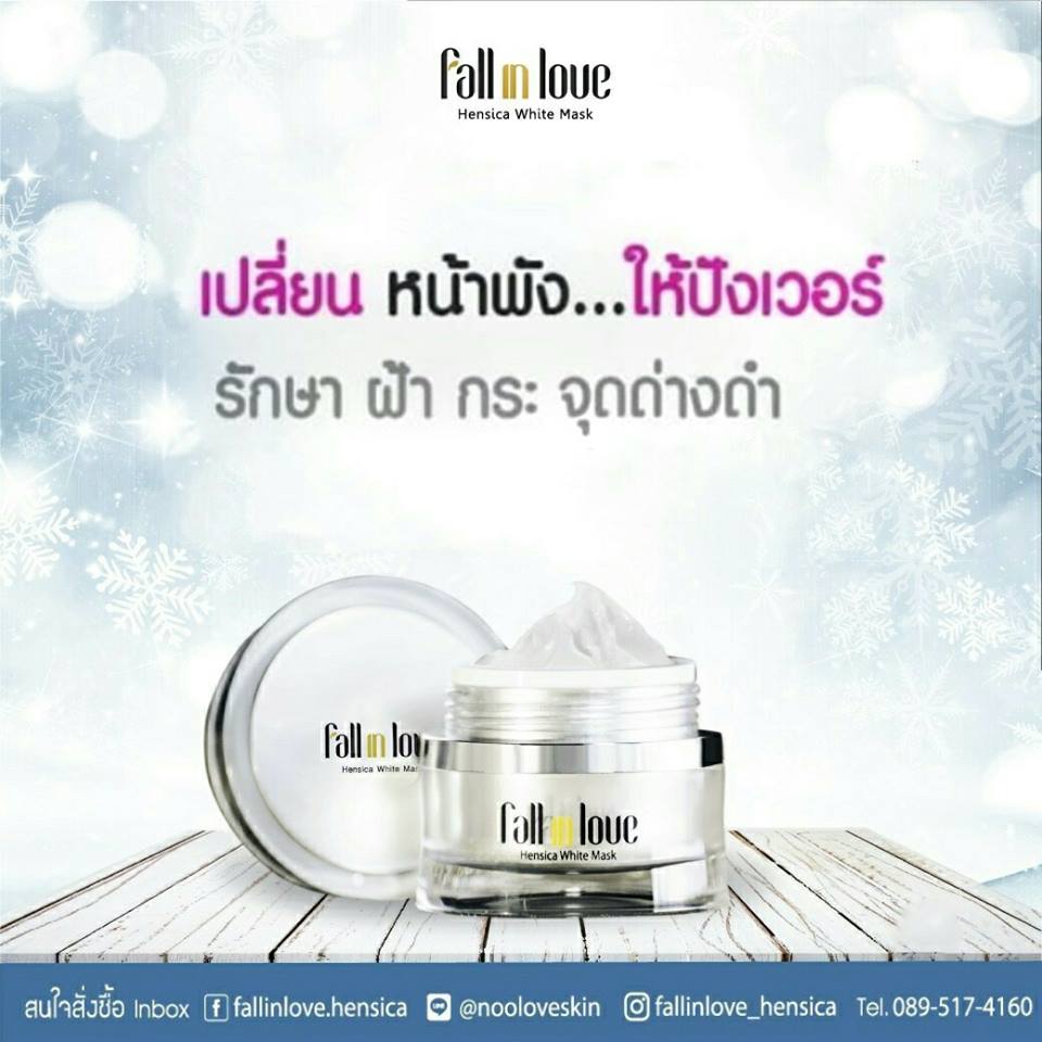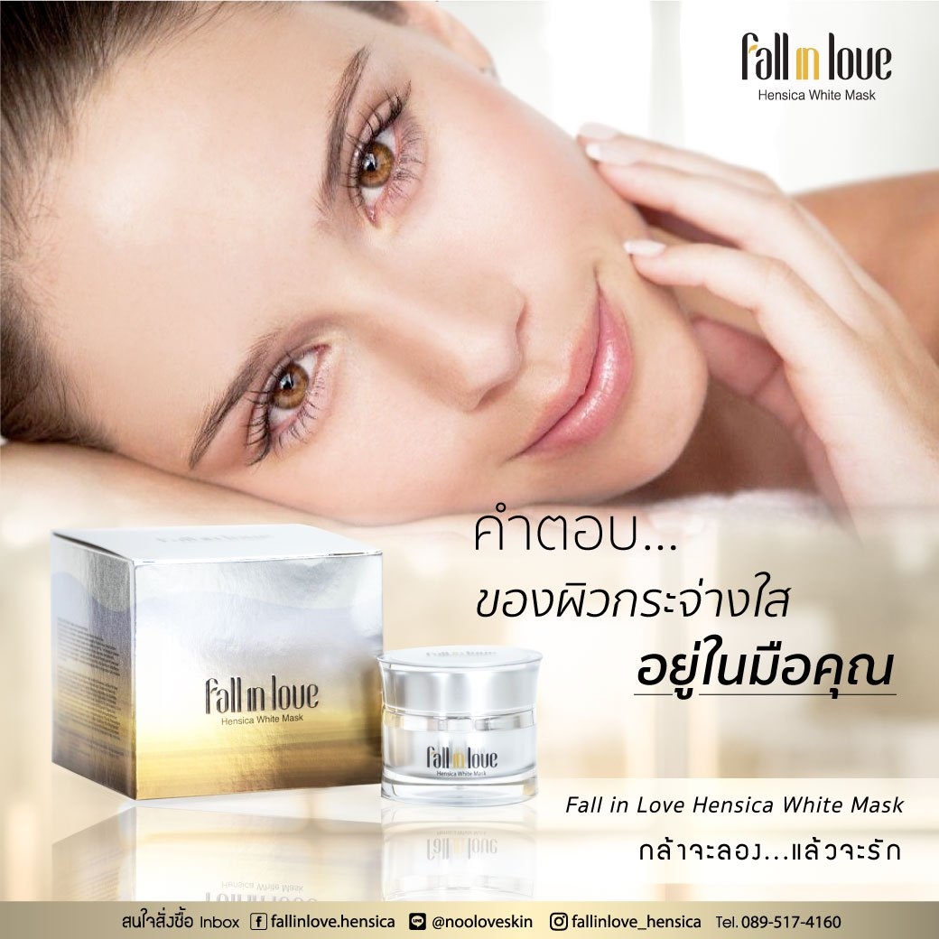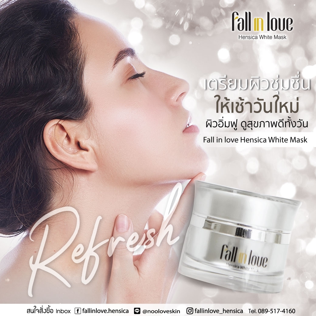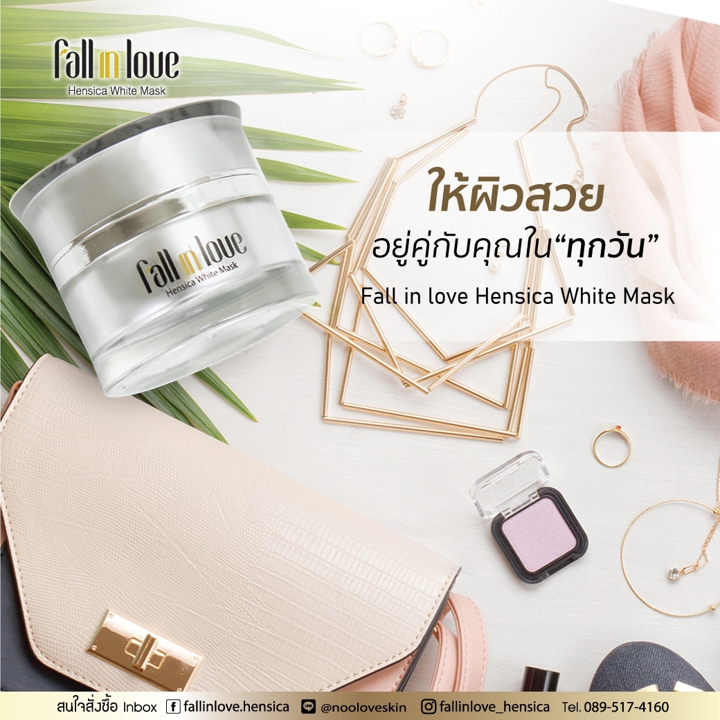 นวัตกรรมใหม่ Fall in Love Hensica White Mask ที่ขอท้าพิสูจน์ในเวลาเพียงค่ำคืนเดียวที่จะช่วยให้ใบหน้าของคุณเนียนนุ่ม สดใส น่าสัมผัส ซึ่งเป็นผลิตภัณฑ์มาส์กเข้มข้นบำรุงผิวหน้าขณะหลับ ที่จะช่วยให้คุณสาวๆที่มีใบหน้าหมองคล้ำ ฝ้า กระจุดด่างดำให้แลดูจางลง ขาวใสอย่างเป็นธรรมชาติ
