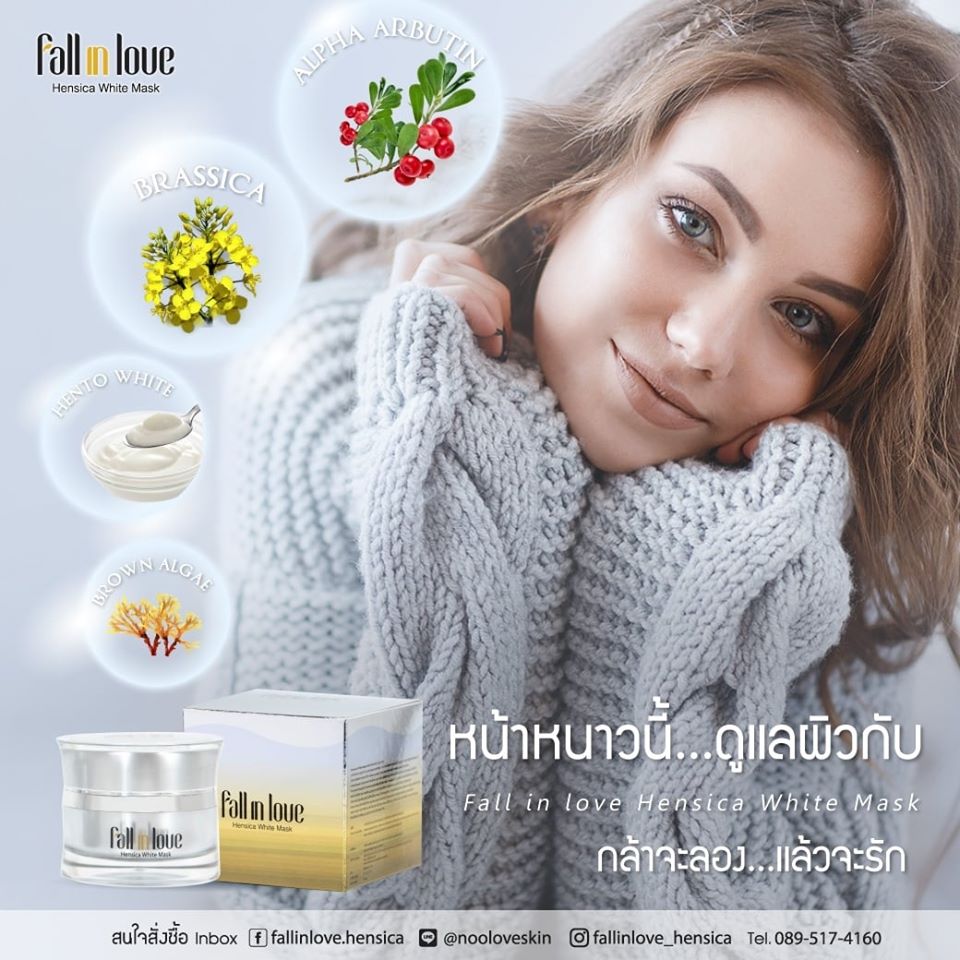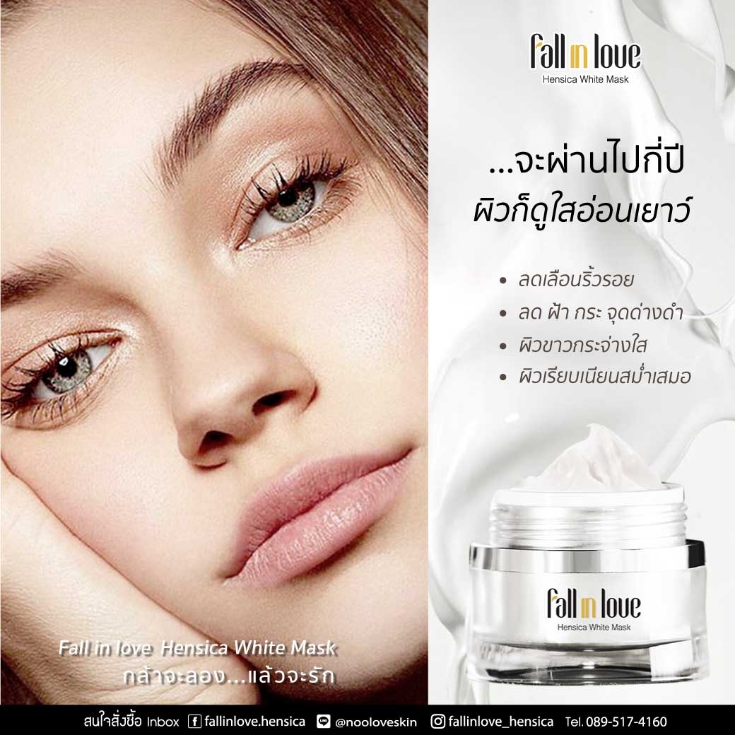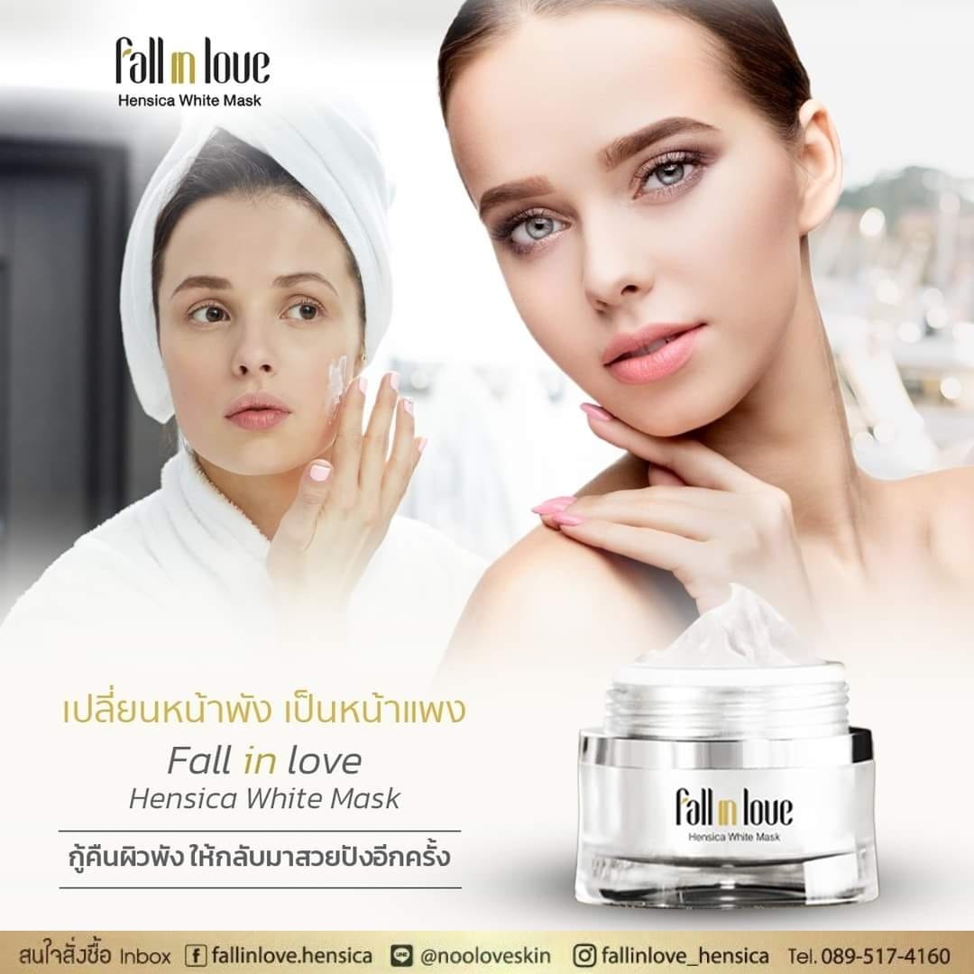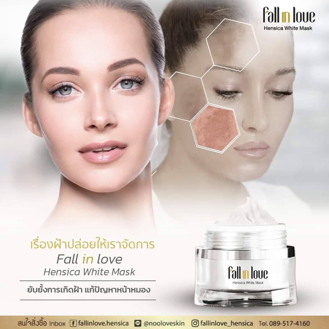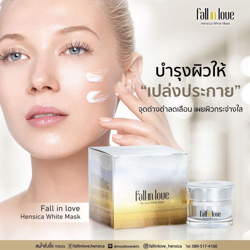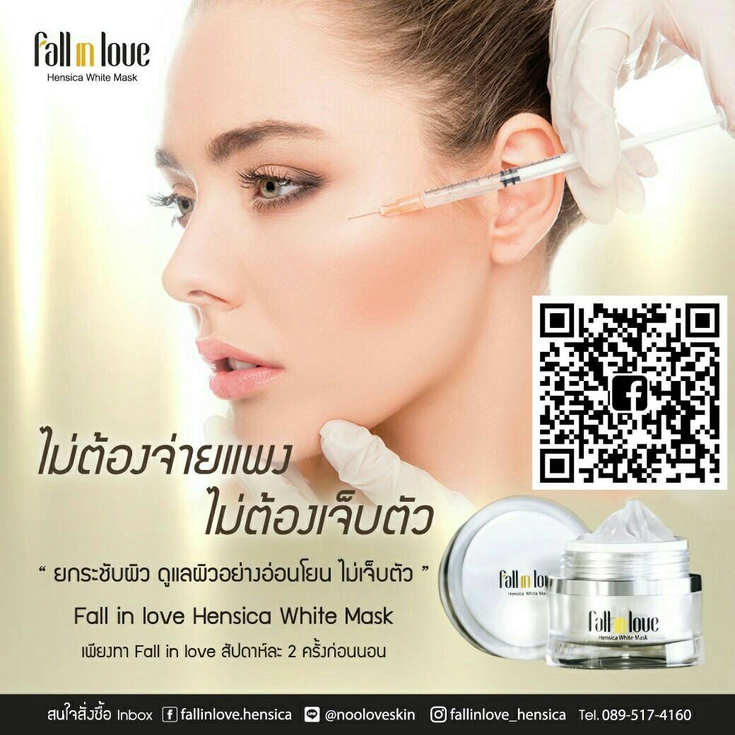นวัตกรรมใหม่ Fall in Love Hensica White Mask ที่ขอท้าพิสูจน์ในเวลาเพียงค่ำคืนเดียวที่จะช่วยให้ใบหน้าของคุณเนียนนุ่ม สดใส น่าสัมผัส ซึ่งเป็นผลิตภัณฑ์มาส์กเข้มข้นบำรุงผิวหน้าขณะหลับ ที่จะช่วยให้คุณสาวๆที่มีใบหน้าหมองคล้ำ ฝ้า กระจุดด่างดำให้แลดูจางลง ขาวใสอย่างเป็นธรรมชาติ