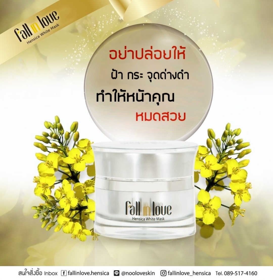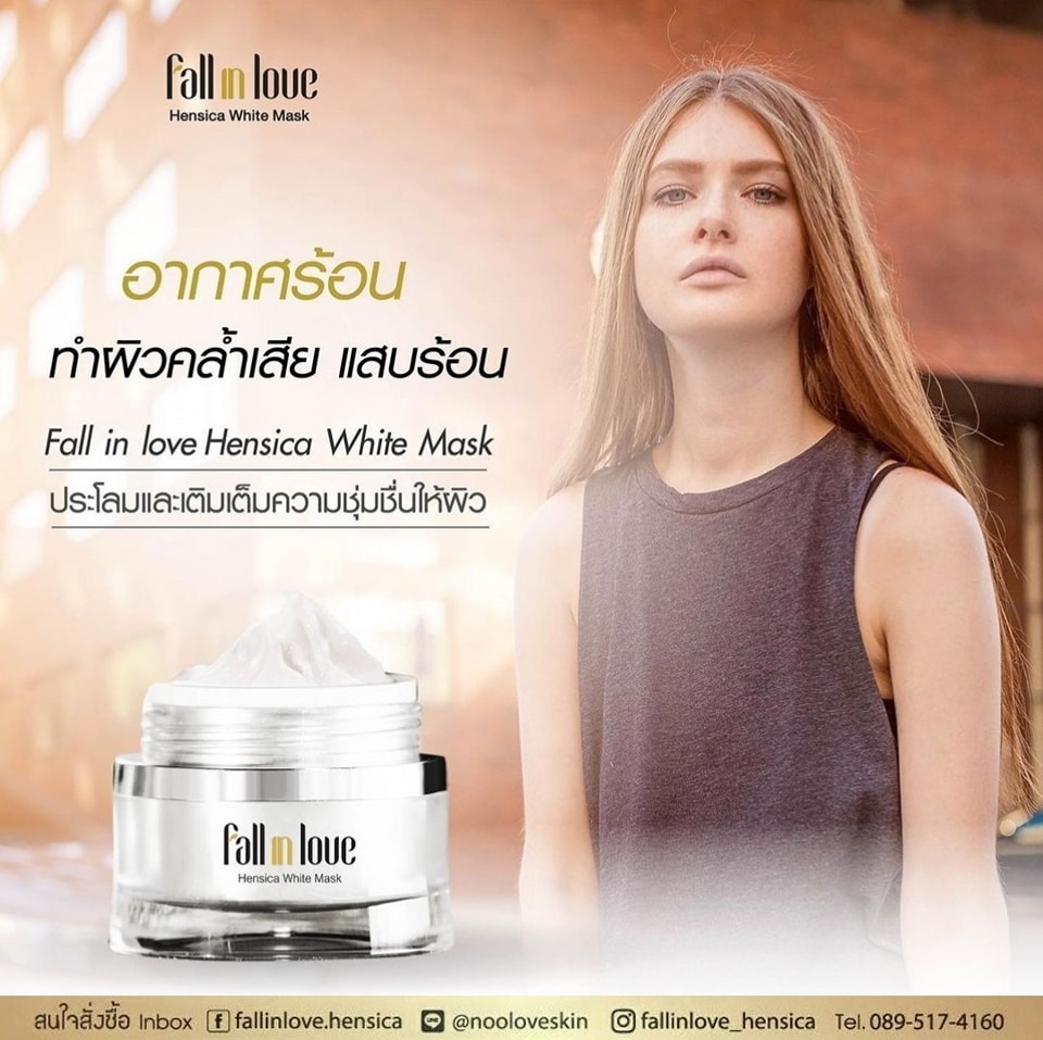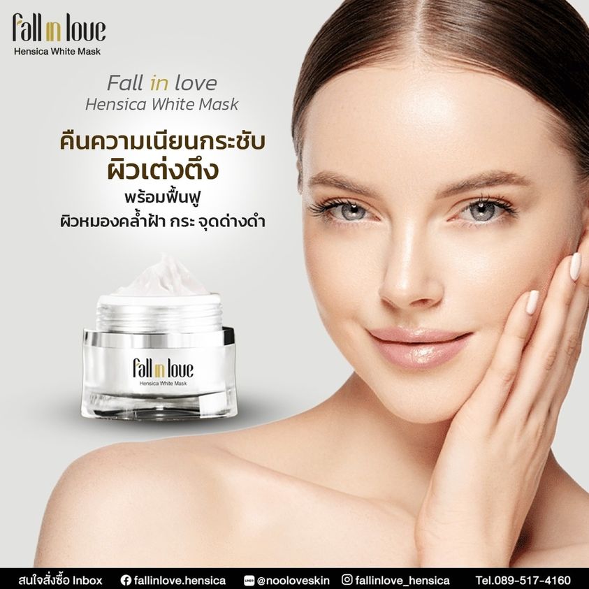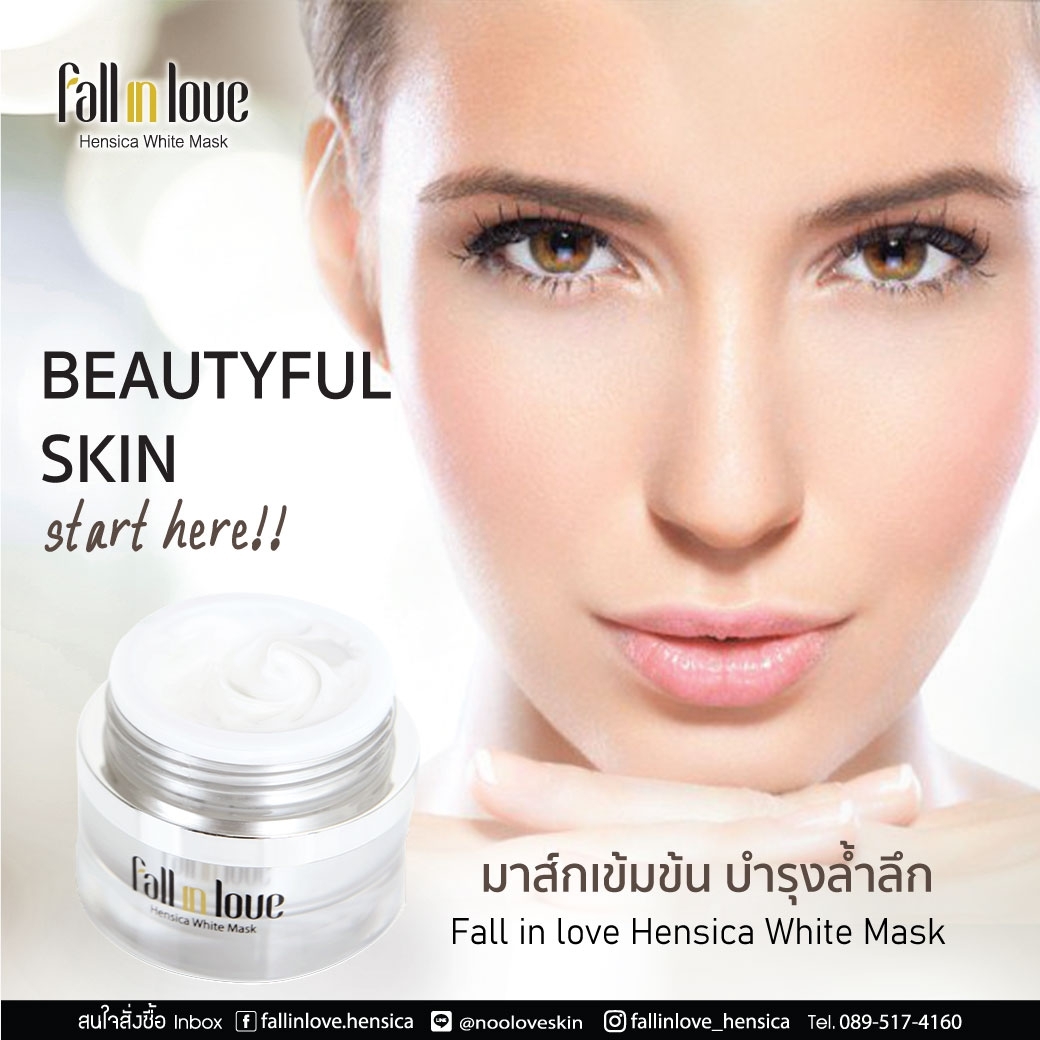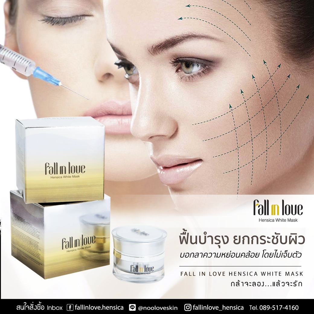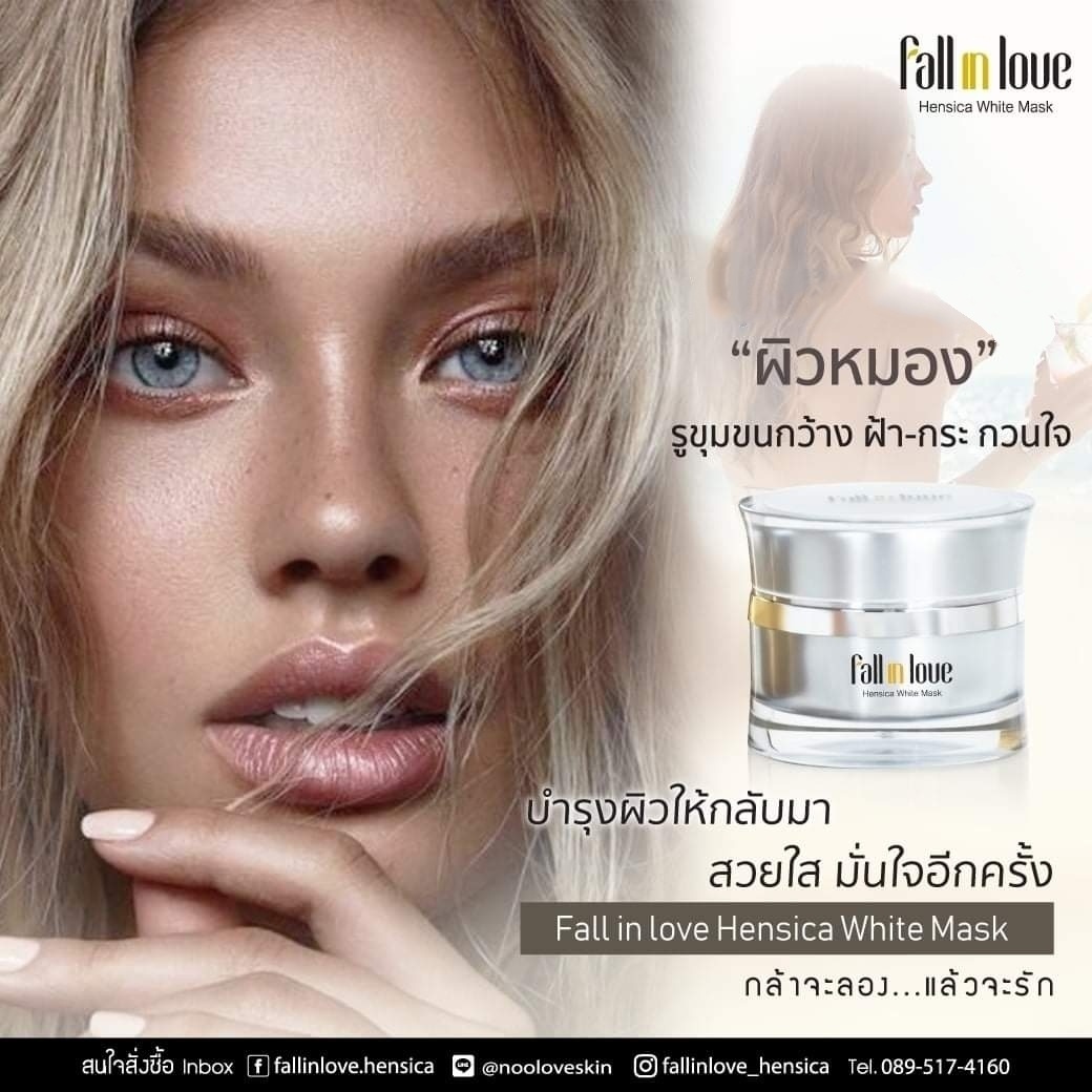 นวัตกรรมใหม่ Fall in Love Hensica White Mask ที่ขอท้าพิสูจน์ในเวลาเพียงค่ำคืนเดียวที่จะช่วยให้ใบหน้าของคุณเนียนนุ่ม สดใส น่าสัมผัส ซึ่งเป็นผลิตภัณฑ์มาส์กเข้มข้นบำรุงผิวหน้าขณะหลับ ที่จะช่วยให้คุณสาวๆที่มีใบหน้าหมองคล้ำ ฝ้า กระจุดด่างดำให้แลดูจางลง ขาวใสอย่างเป็นธรรมชาติ