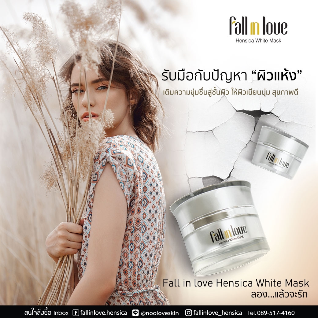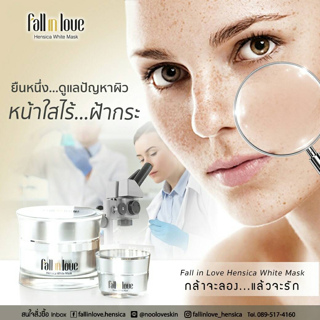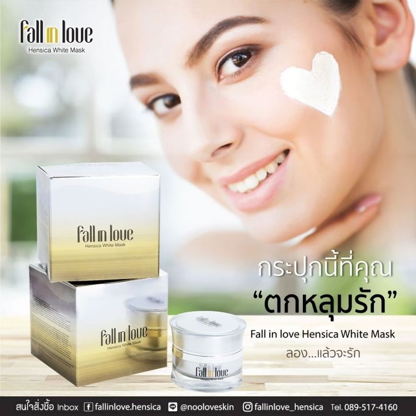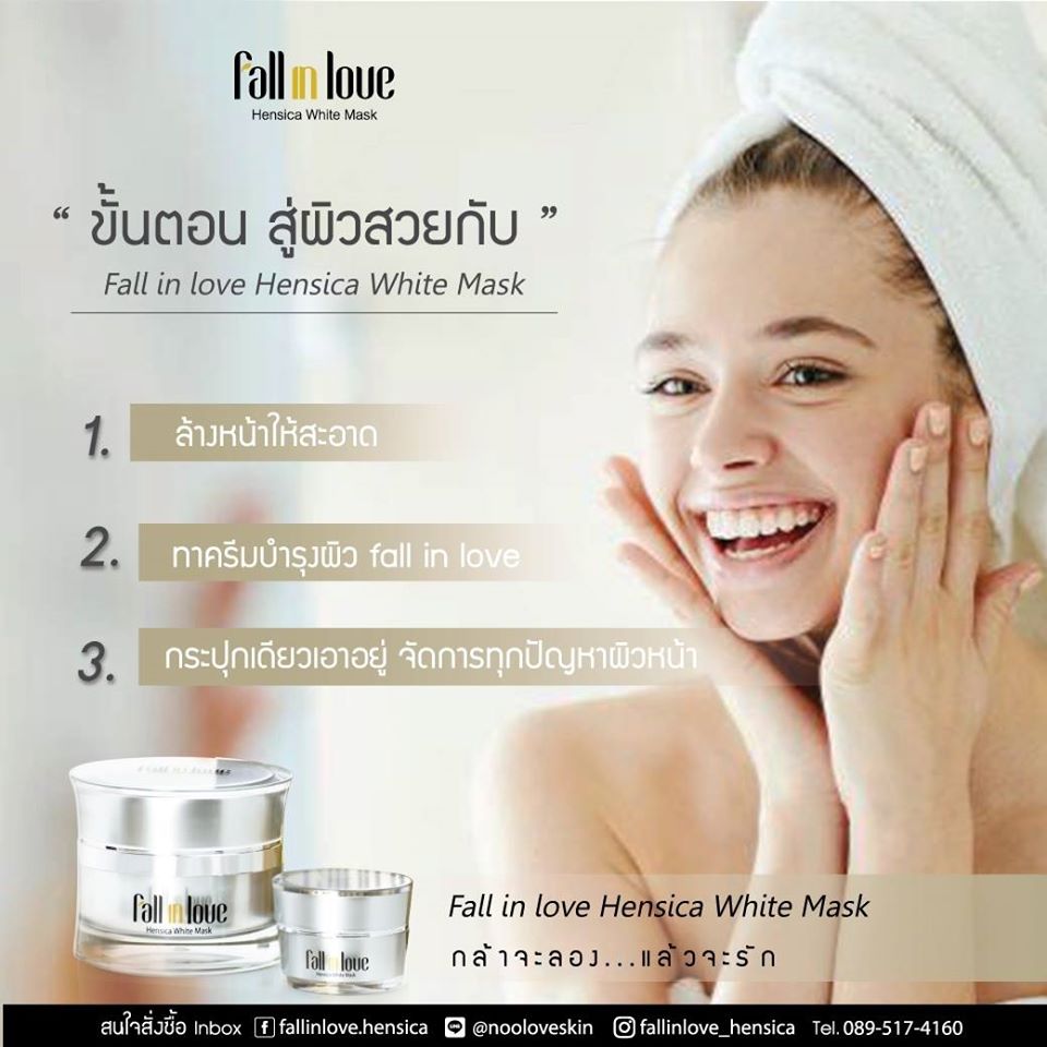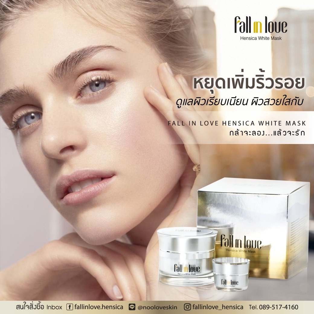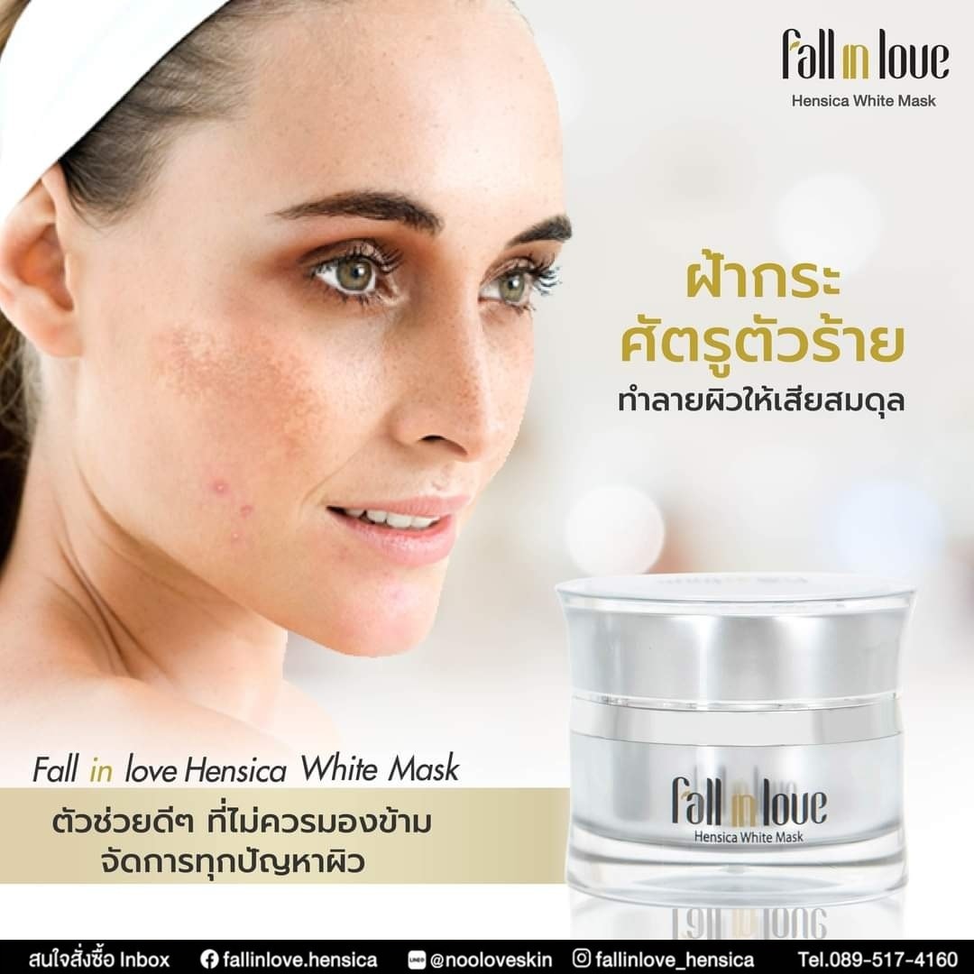 นวัตกรรมใหม่ Fall in Love Hensica White Mask ที่ขอท้าพิสูจน์ในเวลาเพียงค่ำคืนเดียวที่จะช่วยให้ใบหน้าของคุณเนียนนุ่ม สดใส น่าสัมผัส ซึ่งเป็นผลิตภัณฑ์มาส์กเข้มข้นบำรุงผิวหน้าขณะหลับ ที่จะช่วยให้คุณสาวๆที่มีใบหน้าหมองคล้ำ ฝ้า กระจุดด่างดำให้แลดูจางลง ขาวใสอย่างเป็นธรรมชาติ