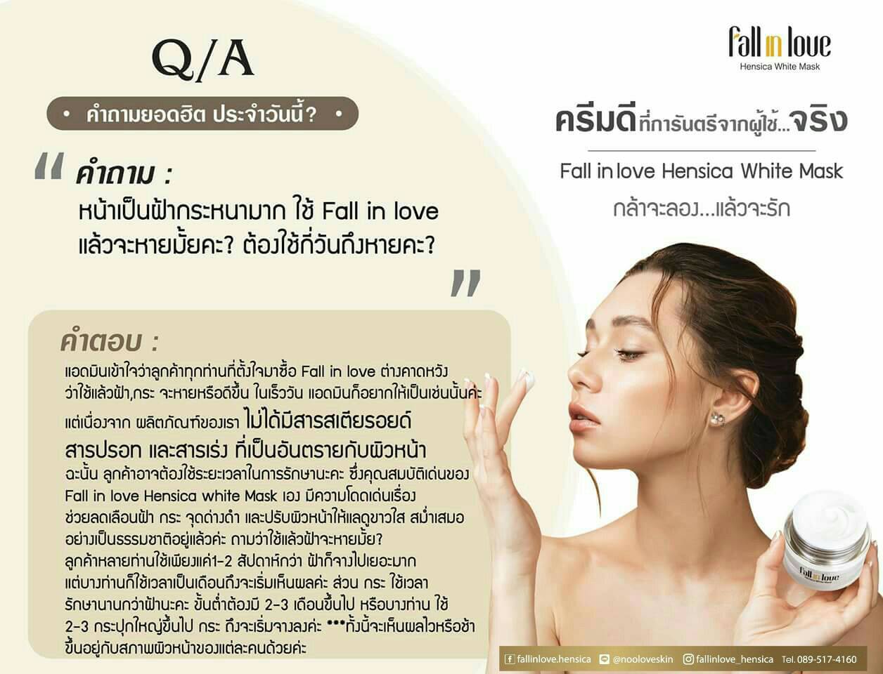 ✌✌ เรียกความมั่นใจให้คุณแค่เพียงข้ามคืน…ง่ายๆด้วย Fall in Love Hensica White Mask สิคะ